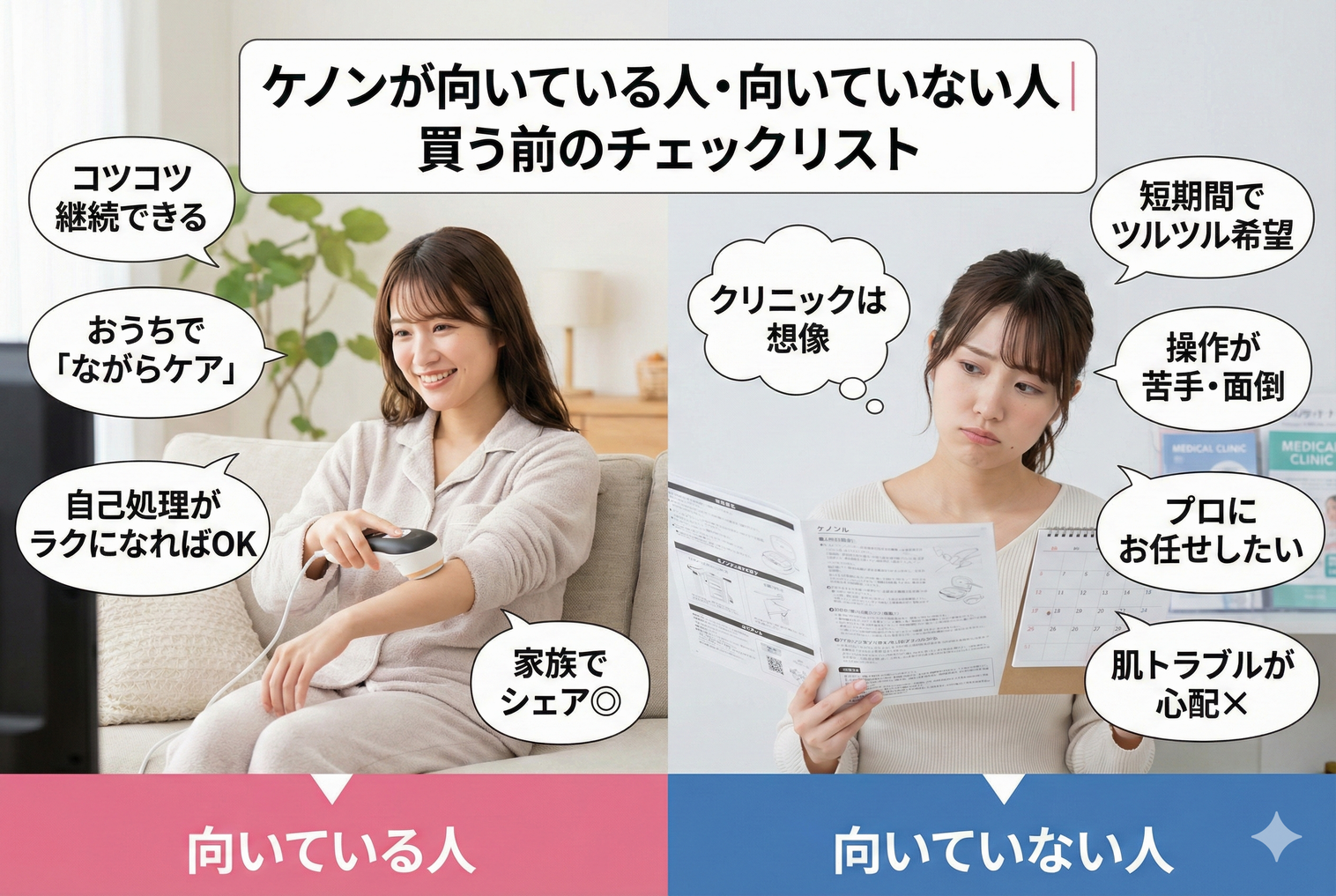 7. ケノンが向いている人・向いていない人|買う前のチェックリスト