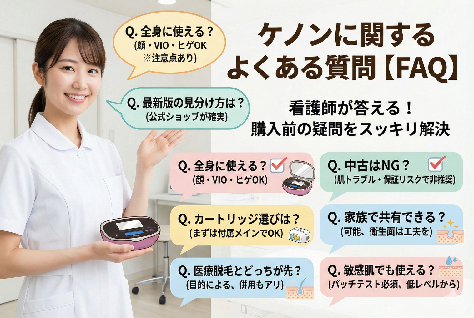1. Q1. 家庭用 脱毛器 ケノンは、本当に全身に使えますか?