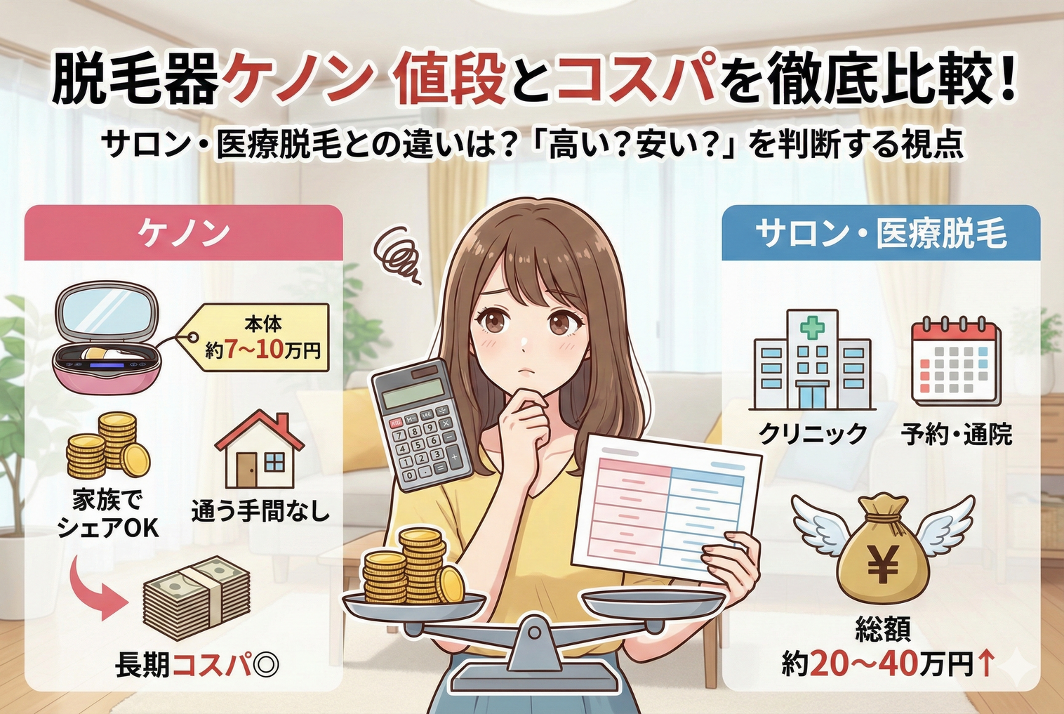 4. 脱毛器 ケノン 値段とコスパを徹底比較(サロン・医療脱毛との違い)
