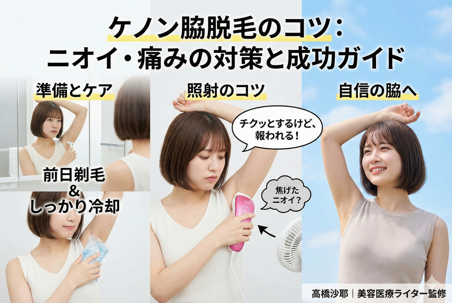 - 脱毛器 ケノン 脇(ケノン 脱毛器 脇)は、変化が出やすい反面、痛みやニオイも出やすい。剃毛と冷却を丁寧に